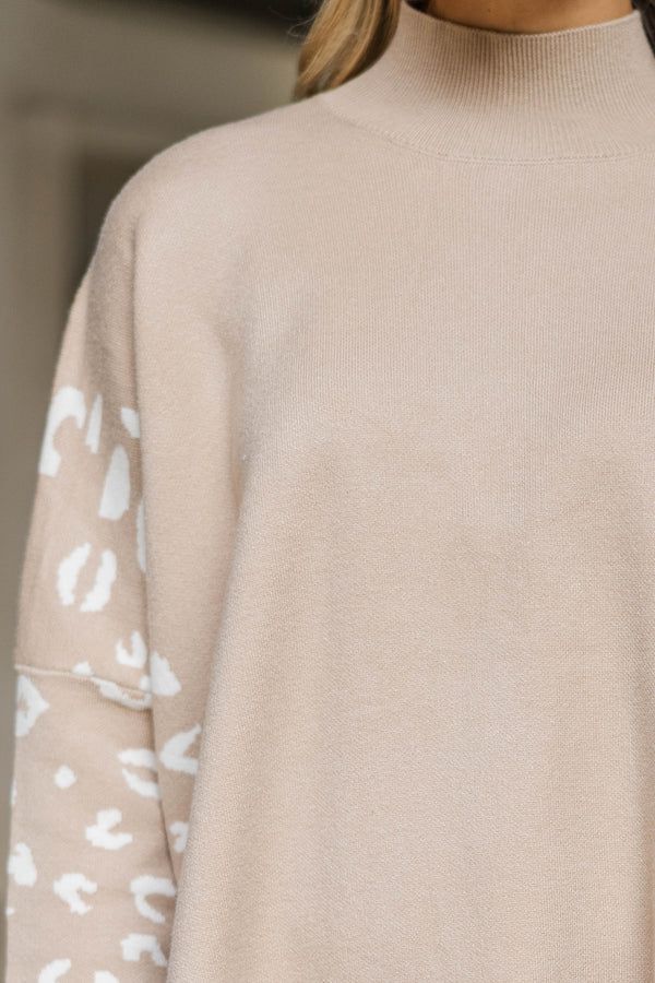 All In Theory Taupe Brown Leopard Sweater Tunic