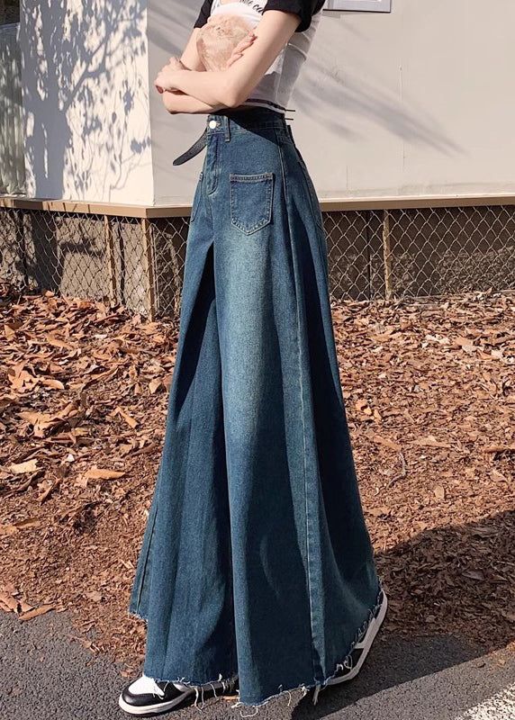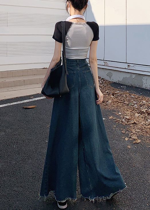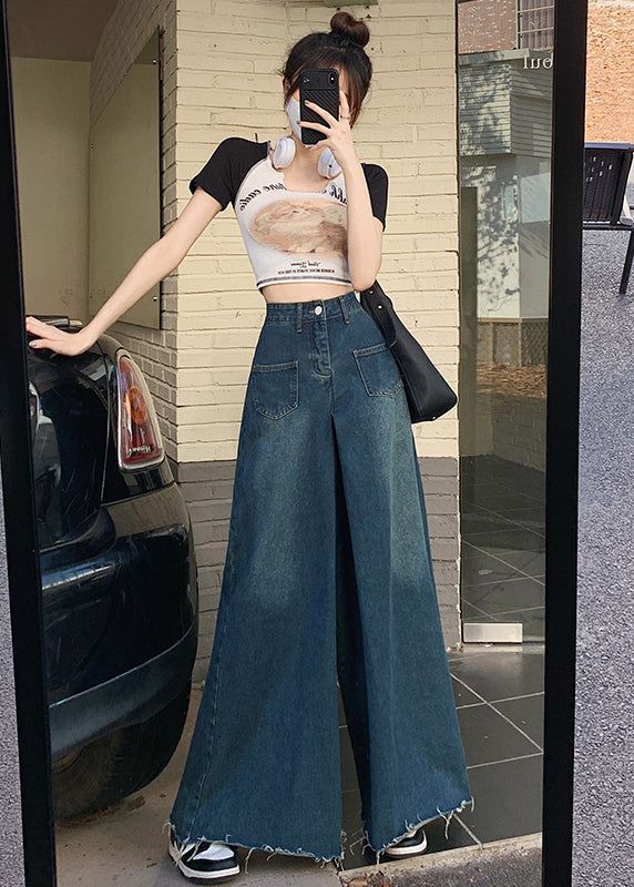 American Blue High Waist Ragged Wide Leg Jeans Summer