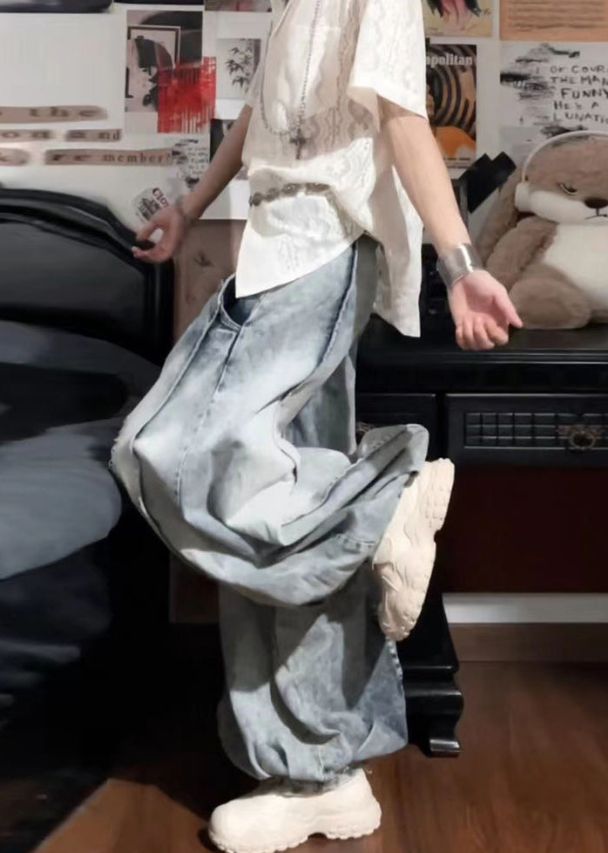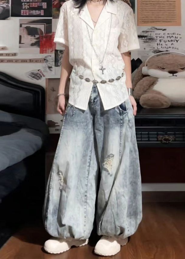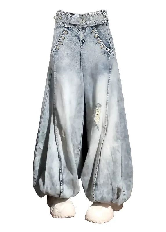 Bohemian Light Blue High Waist Denim Ripped Jeans Spring