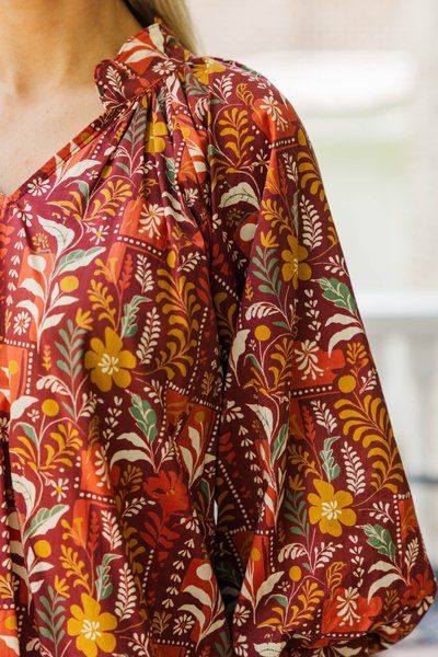 Burgundy Bouquet Long Sleeve Blouse