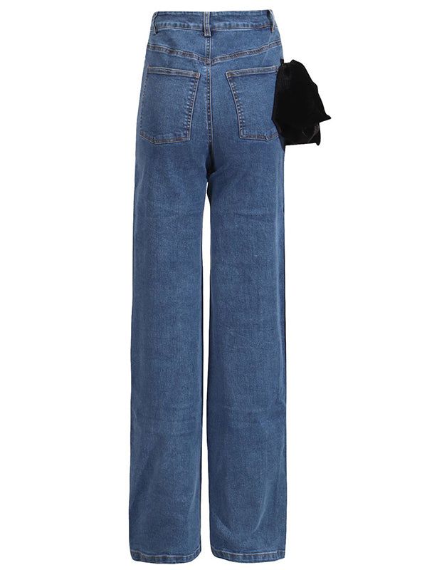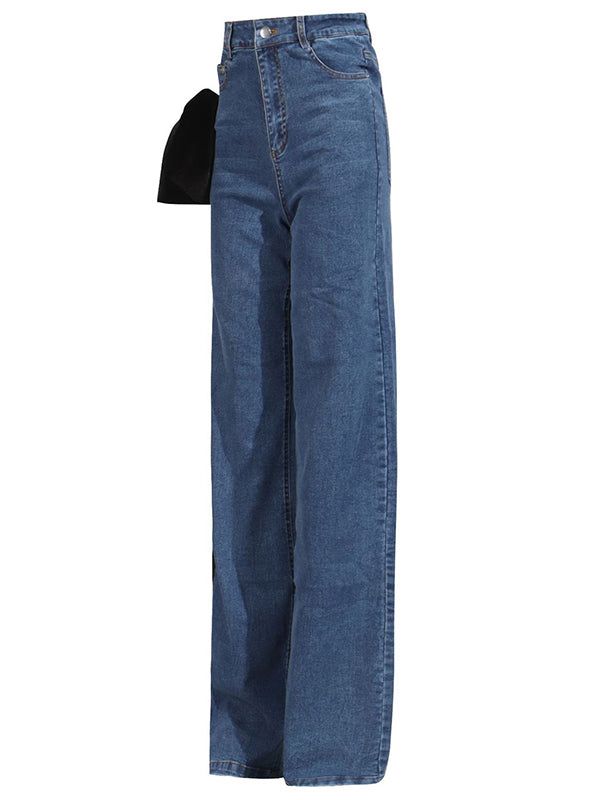 Chic Red Tied High Waist Buttoned Straight Jeans