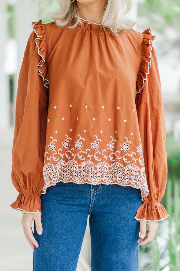 Feeling Appreciated Dark Amber Eyelet Blouse